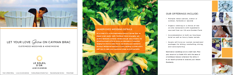 Concept and design of advertising campaign and collateral materials for brand new luxury resort and organic garden farm on Cayman Brac.